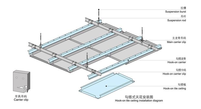勾搭式(shi)鋁天花板廣泛應用(yong)于高級寫字樓、醫院、辦(ban)公室、機場、賓(bin)館(guan)、會所、銀行、商場、展覽館等吊頂裝飾。