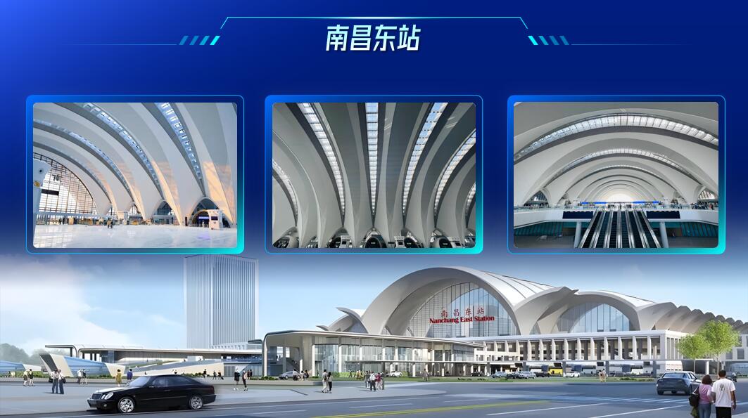 2021年3月(yue)2日(ri),南昌(chang)東(dong)站(zhan)開工建(jian)設;2022年12月(yue)20日(ri),南昌(chang)東(dong)站(zhan)站(zhan)房(fang)主體結構封頂(ding);2023年12月(yue)27日(ri),南昌(chang)東(dong)站(zhan)通(tong)車運營。